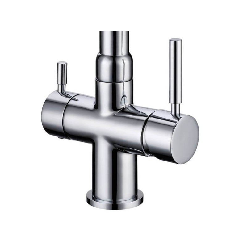 Ce mitigeur 3 voies vous permettra d'avoir l'eau froide, l'eau chaude et l'eau filtrée par vos systèmes de purification d'eau de boisson sous évier tels que : osmoseur, fltrations, microfiltration, ultrafiltration